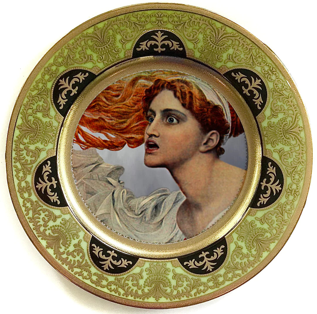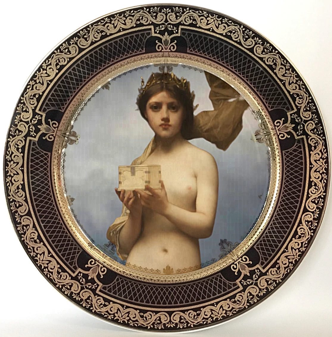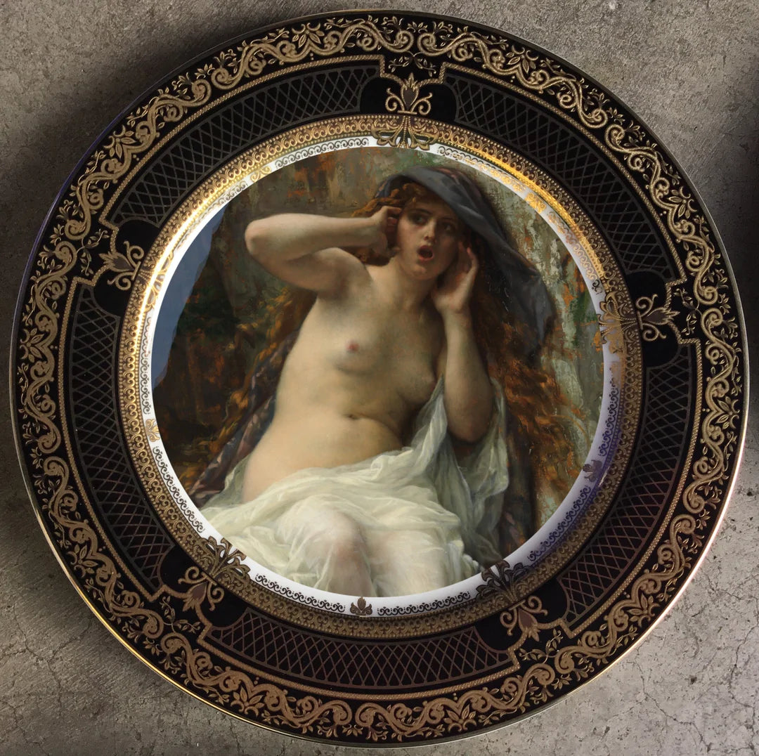 Classical paintings meet highly decorated porcelain plates in these stunning Art Plates, adding a touch of old-world charm and quirky humor to your home. Decorate your walls or table with these food-safe plates, though hand washing is recommended and microwaves should be avoided if plates have gold details. Dinner plates measure 10.5”.