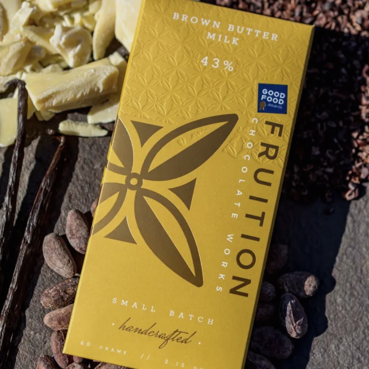 This award-winning bar is made with locally churned Ronnybrook Farm browned butter and lends deep caramel flavors to this interpretation of a classic milk chocolate bar. 43% Cocoa. Made in the Catskills