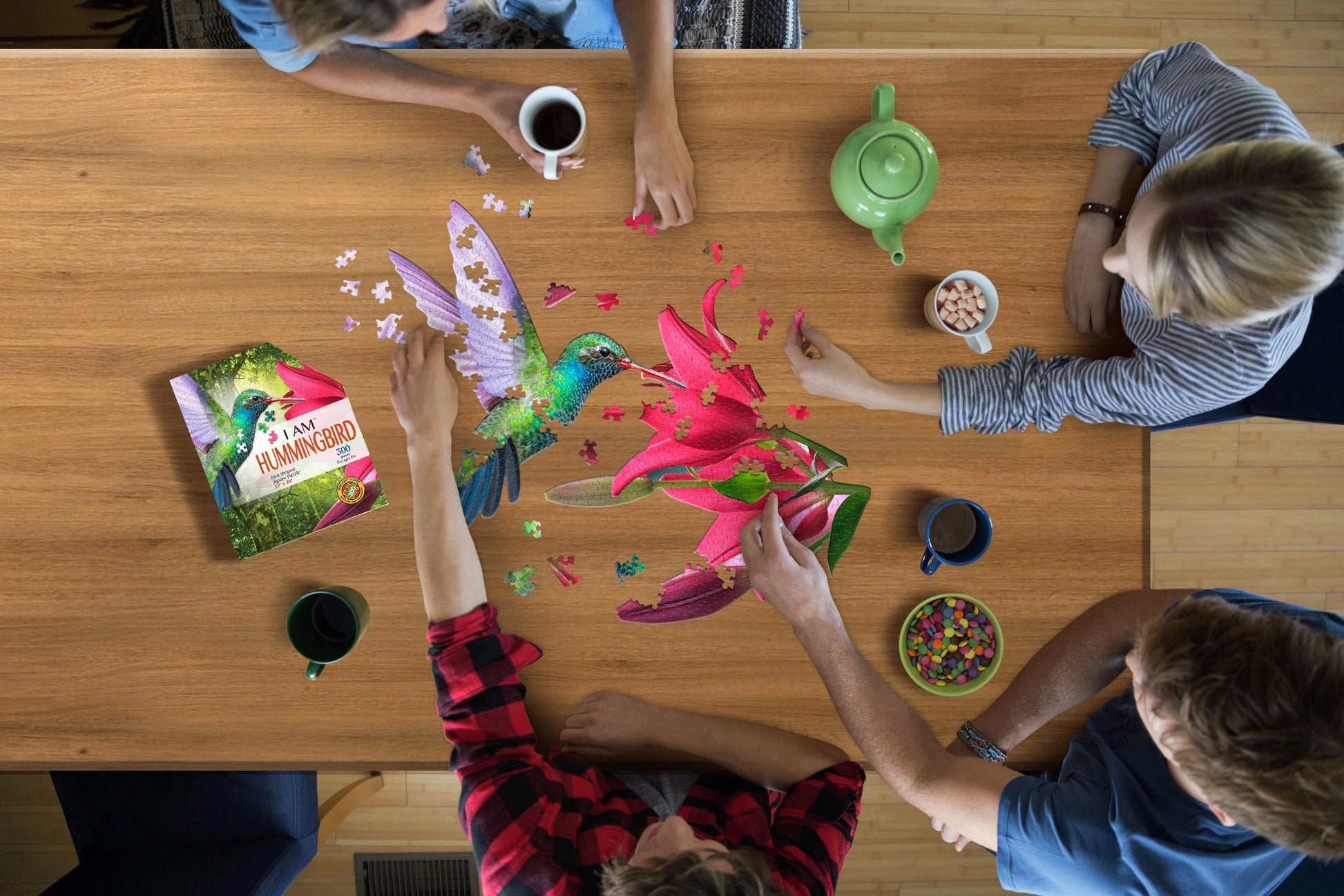 Discover the magic of these tiny aerial acrobats with our hummingbird jigsaw puzzle! This 300-piece brain-teaser features a uniquely shaped design that captures the beauty of nature's most enchanting bird. Once assembled, your puzzle measures a impressive 23" x 20"—perfect for framing or displaying. Every puzzle includes an educational Fun Facts insert packed with surprising tidbits, like how hummingbirds lay eggs no bigger than coffee beans! Whether you're a puzzle enthusiast or seeking a thoughtful gift for a nature lover, this delightful challenge combines entertainment with learning in one gorgeous package.