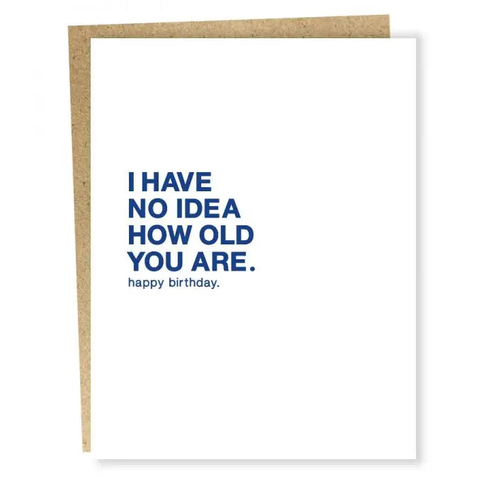 "I have no idea how old you are. Happy Birthday." Letterpress card with envelope, 4.25 x 5.5