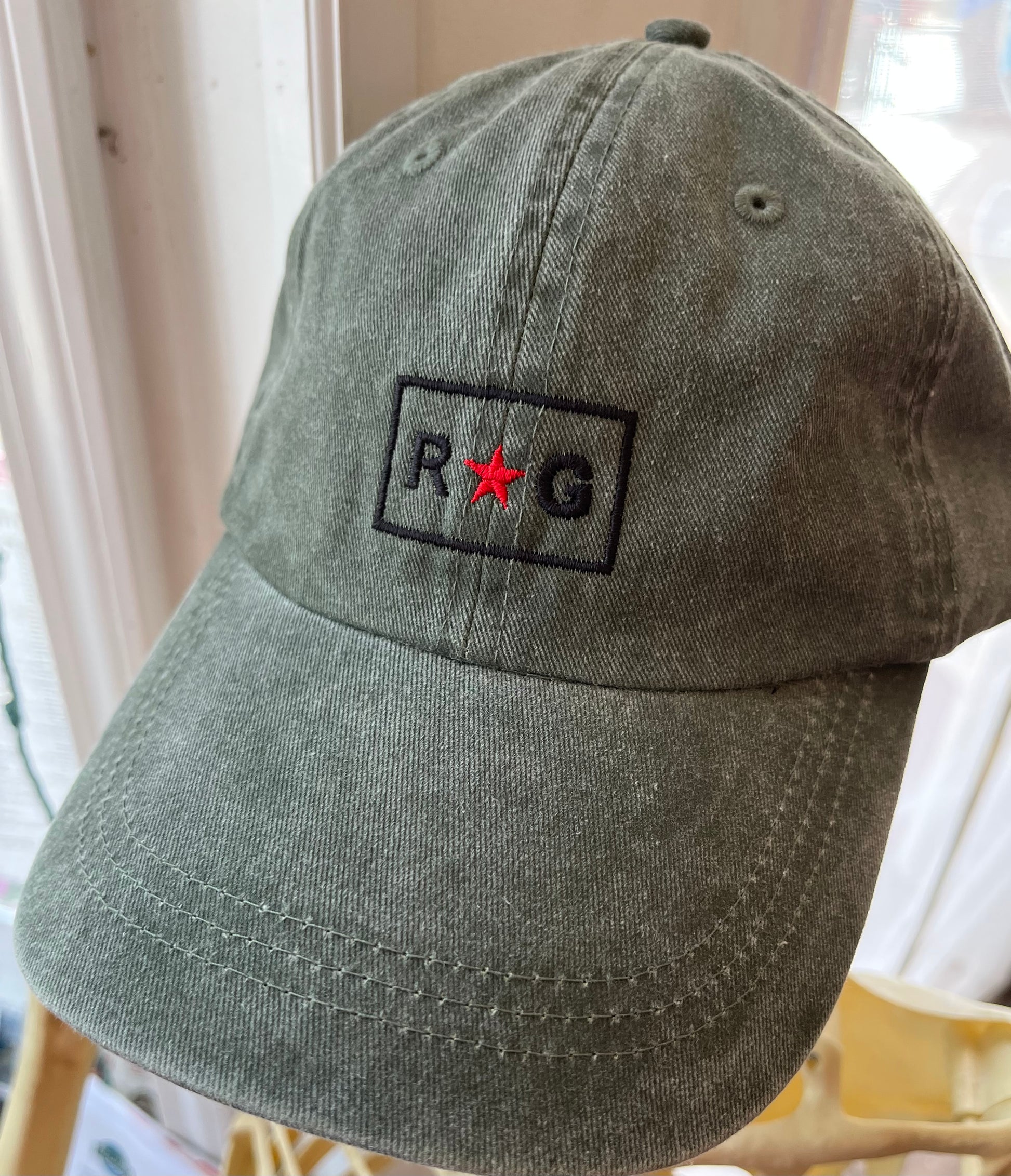 Baseball cap in olive with custom embroidered Roxbury General RG logo feels like an old favorite from day one. With an adjustable strap, it’s a perfect fit. Makes you look smart! Washable.