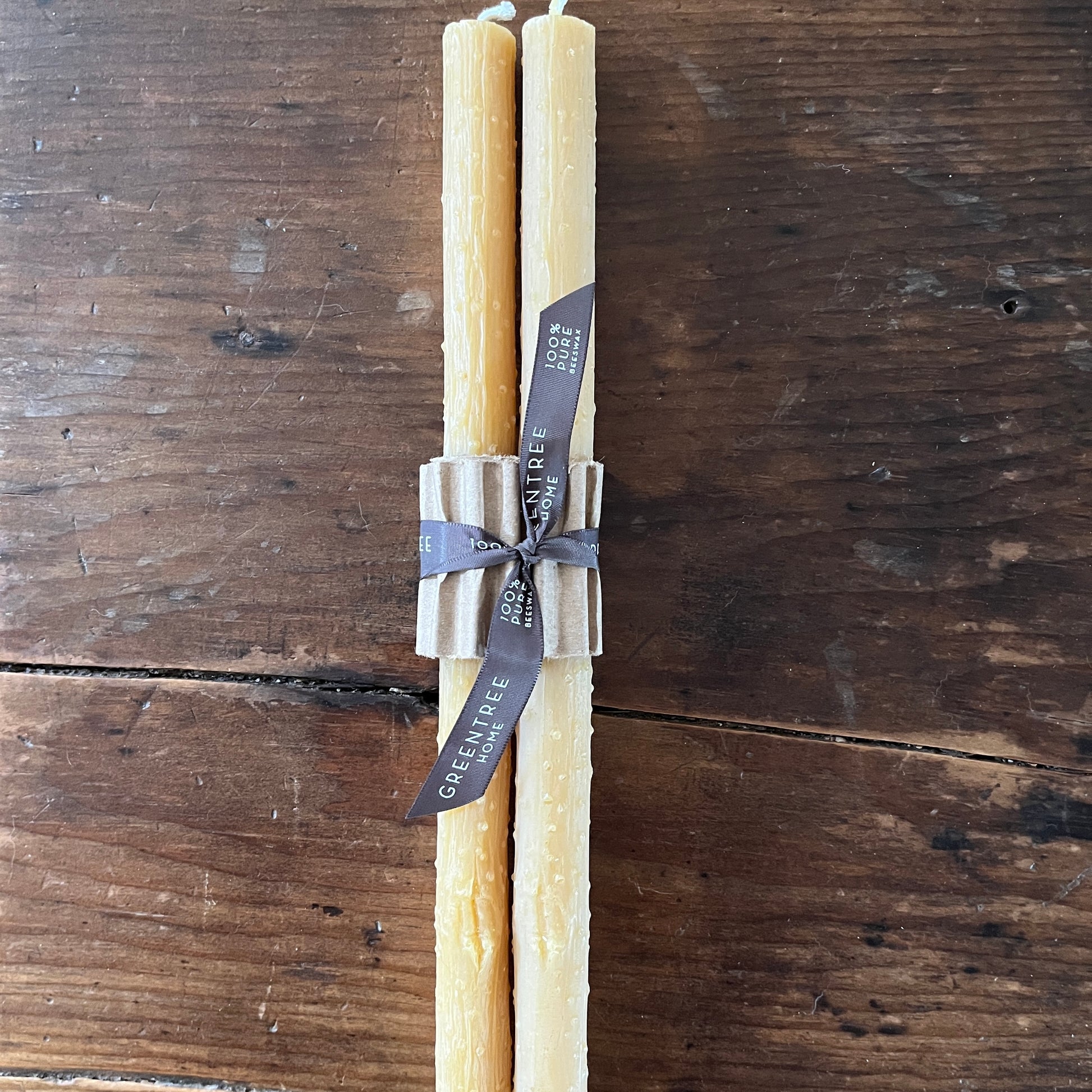 Cast from Elderberry branches native to New York State, these 12" beeswax tapers will bring the natural world to your table. Each candle is hand poured from pure beeswax, and have a burn time of 12-14 hours.