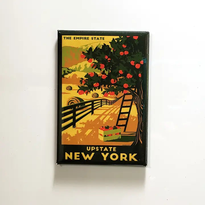 These upstate magnets feature outdoor life in charming vintage travel poster style, with hiking, apple picking, kayaking, and exploring the Catskills. Each magnet is 2" x 3" wrapped metal.